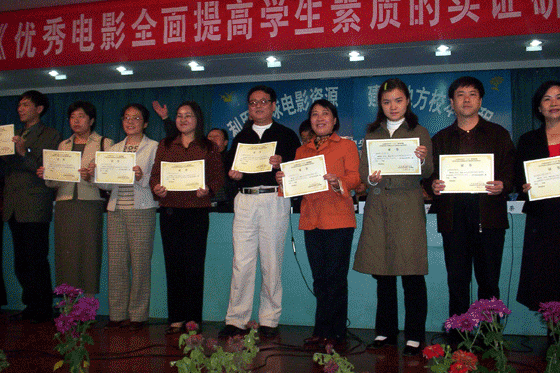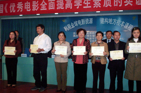 注:大量图片在文章后面 用电影上课,这听起来是很新鲜的事。在全国都热火朝天地研究校本课程之时,电影课这样一门以前鲜为人知的新课程,尤其使人好奇。电影课,到底是怎么回事呢?笔者得知最近在武汉召开电影课的第二次全国研讨会,特地到会作了观察。 我首先为会议的人气所打动。36个学校39堂电影课的现场和演示,师生互动,听会者4小时安坐不动,时而掌声雷动,台上台下流泪感动。10月9日至12日,23个省区市的260所电影课课题学校(高中初中小学幼儿园)的校长园长和主持电影课科研的老师到会360多人,他们代表了参与电影课的42万名学生和2万多名教师。其中,内蒙古、新疆、青海、贵州的课题学校,成为西部开设电影课的先驱;江西、湖北、重庆、上海、湖南、广东、北京的课题学校,成为电影课走向全国,走向世界的窗口;还有50多所准备参加电影课课题研究的学校列席。 为什么叫做课题学校?原来,《电影课实证研究》是教育部全国教育科学“十五”规划课题,由教育部中央电化教育馆领导,由北京千万代基础教育研究中心执行实施。本次会议由湖北省教育信息化发展中心领衔合作承办。我去问会议的组织者有何整体观感,他说:“今年花比去年红,可惜明年花更好,知与谁同?”这是宋词,听起来颇为感慨哩! 视觉冲击:电影课课程体系设计展 大会会场设在武汉崇仁路小学。巨大的视觉冲击对笔者产生,那是一个规模很大的展览。标题板上写着:《电影课课程体系设计展》。大约有60块2米高1.2米宽的展板,悬挂在2.5米高的展架上。每块展板上是一个学期的9课电影课课程设计。从幼儿园到高中,一共有324课,每课是同一个主题的系列电影。可以说是五彩缤纷、眼花缭乱。仔细看来,幼儿园有:女娲补天、龟兔赛跑、丑小鸭、三个和尚、狼来了、诺亚方舟、神笔、聪明的一休等经典童话、神话;小学有阿拉丁、阿凡提、阿里巴巴、蝙蝠侠、蒙面侠、小飞侠、灰姑娘、大闹天宫、金字塔、海盗、巫婆巫师、王子与乞丐、环境保护、机器人、卓别林等等;中学越来越深,有教育部推荐给中学生的30部中外名著对应的电影,有对应历史、语文、地理、生物、自然的系列电影,如独立战争、木马屠城记、哥伦布、马可波罗、李冰、斯巴达克思、白求恩、拿破仑、莫扎特、凡高、马克思、开国大典等等,数不胜数。大大的标语板上写着:“开发一课,共享百课。”会议设计者告诉我,这次会议上,每个学校将选领一个主题课例回去研究开发,然后课题学校共享。 一本专著:《电影课实验在中国》 我看见很多代表手里都拿着一本书,赭红色的封面鲜亮注目,封面上一排铅笔,画着各国的国旗图案,象征着从全球很多国家选择电影排入课表,右侧一段提示语:“19世纪末,人类发明了电影;20世纪末21世纪初,中国大规模实验将电影引入教育。”高等教育出版社2003年10月出版。书的封底印着:“不要让学生看所有的电影,要所有学生看最好的电影。”封底和扉页收录了中国教育学会会长顾明远的题词:“学校开设电影课,教育史上第一遭。”本书分为四个部分“事实”“研究”“发现”“实证”和一个附录。内容提要写道:本书是一份中国教育科学实验实证的考察性报告,介绍了10年来从全球电影资源中筛选上品精品,引入基础教育,开设电影课的事实。通过心理测查等评价方法,发现电影课有巨大的教育功能:可以促进学生素质全面提高,丰富学科教学,建构校本课程。电影课与现代教育理论息息相通。书的“研究”部分介绍了专家师生选片、组织常规看片、主题课例研究、学科电影整合、评价体系。实证则是来自学校的声音,校长、教师、学生、家长各抒己见,仁者见仁,智者见智。附录则介绍了开设电影课的组织、管理、各种具体办法以及学校的优秀研究方案、获奖名单。看这样子,周武郑王,正经八百,今后的学校好像真的在准备开设一门新课了。有的代表说,电影课现在是校本课程,如果大家欢迎,慢慢就会成为地方课程,进而争取成为国家课程,也未可知。 开幕式上:中国电影课代表团访日报告 中央电化教育馆副馆长王珠珠兼任电影课总课题组组长,她为大会作了工作报告,简单地说,是六大成绩三项任务。她与湖北省教育厅副厅长张继年、武汉市硚口区的教育官员同全体会议代表一起,听取了中国电影课代表团2003年4月14日至26日访问日本的情况报告。日本重视中国的电影课已经走出了四步:1.多次来华考察,到学校与学生直接对话;2.日本《致知》杂志社社长来华采访并大篇幅报道中国电影课;3.2002年4月邀请电影课发起人雷祯孝赴日讲学8大城市,日中友协副会长出面会见,日本国家电视台NHK报道;4.2003年4月邀请中国电影课校长专家代表团11人访问日本,分别在川崎市教育局、日本电影学校演讲介绍电影课。日本国会议员两年均出面座谈。我去问雷先生,为什么日本会如此重视?他说,日本朋友私下告诉他:中国用世界电影教学生,这一批人长大后,因为理解世界各民族的文化,将会在国际组织领导席位的竞选方面取得优势。那时候,联合国、奥运会、各种国际经济组织中,中国人会越来越多。所以,我们要学习你们。 现身说法:宣讲本校开发的39课校本电影课程 中国科学院心理所研究员施建农、首都师范大学副教授康丽颖分别作了《电影课研究的评价体系》《电影课作为校本课程开发的