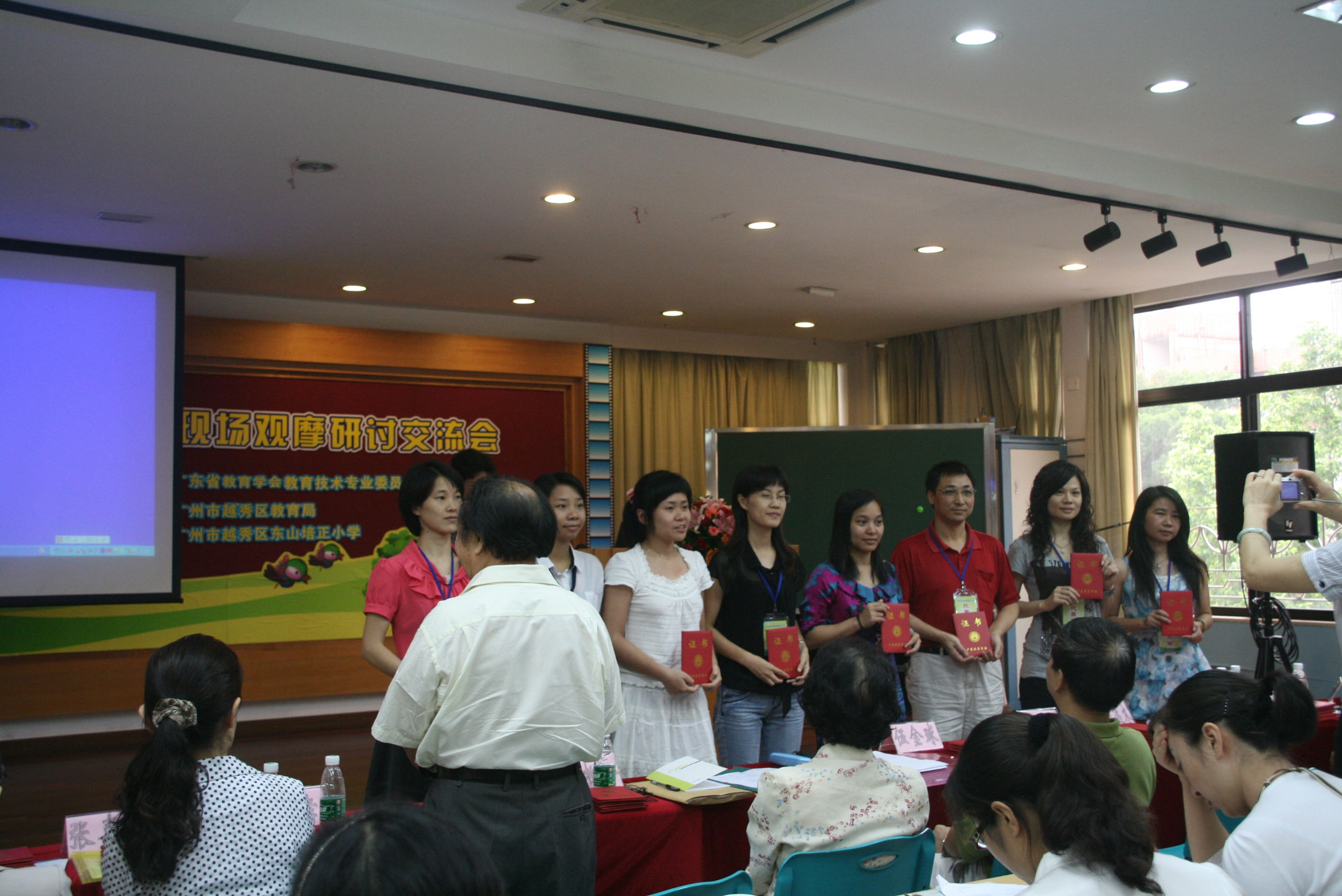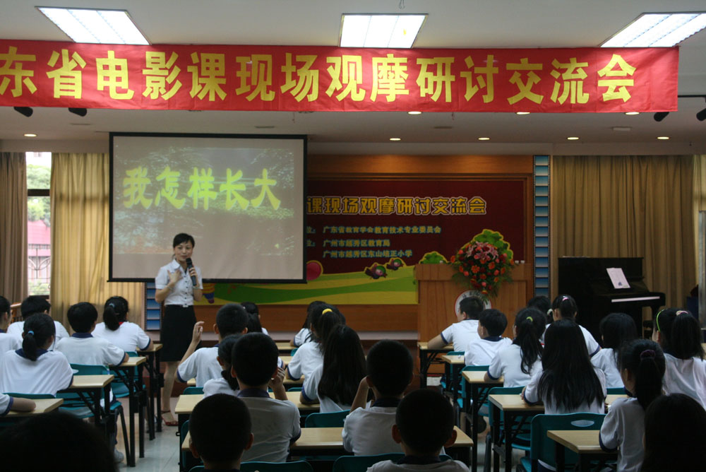 电影课广州会议在广州东山培正小学召开,东山培正小学是全世界培正小学的发祥地,有117年的历史,目前她即将成为广州市的第一所电影课示范学校。(东山培正小学简介:http://www.puiching.cn/) 大会首先由广东教育学会副会长伍柳亭和广州市越秀区教育局副局长张远木致辞,会议由广东省电教馆副馆长伍金球主持。中国教育技术协会电影教育专业委员会副主任、广东教育学会教育技术专业委员会常务副理事长兼秘书长周励群女士做工作报告,中国教育技术协会电影教育专业委员会常务副主任兼秘书长雷祯孝教授做学术报告。广州市电教馆馆长张嘉志到会。 上午广州市朝天小学梁丽霞老师借培正小学的学生上语文电影课,黎绿波教研员进行专家点评。之后大会给“2009全国电影课大赛”广东省获奖教师现场颁奖。 下午分3个教室展示了6节电影课,分别是: 1、广州东山培正小学:《孤儿》思品电影课 邱堃玉老师